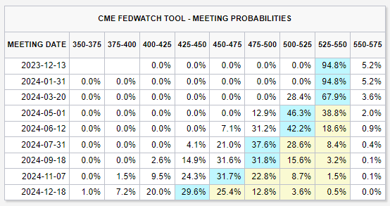 의사록 발표 이후, CME Fed watch는 큰 움직임 없이 2024년 5월 첫 금리 인하에 힘을 싣고 있습니다.