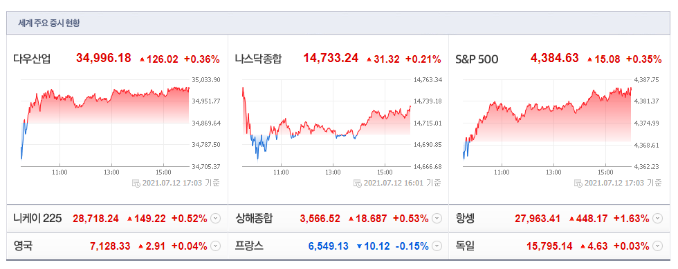 오늘 미국 증시는 2분기 실적 발표(오늘부터 금융주 시작)를 앞두고 3대 지수 모두가 상승세로 마감하였습니다.