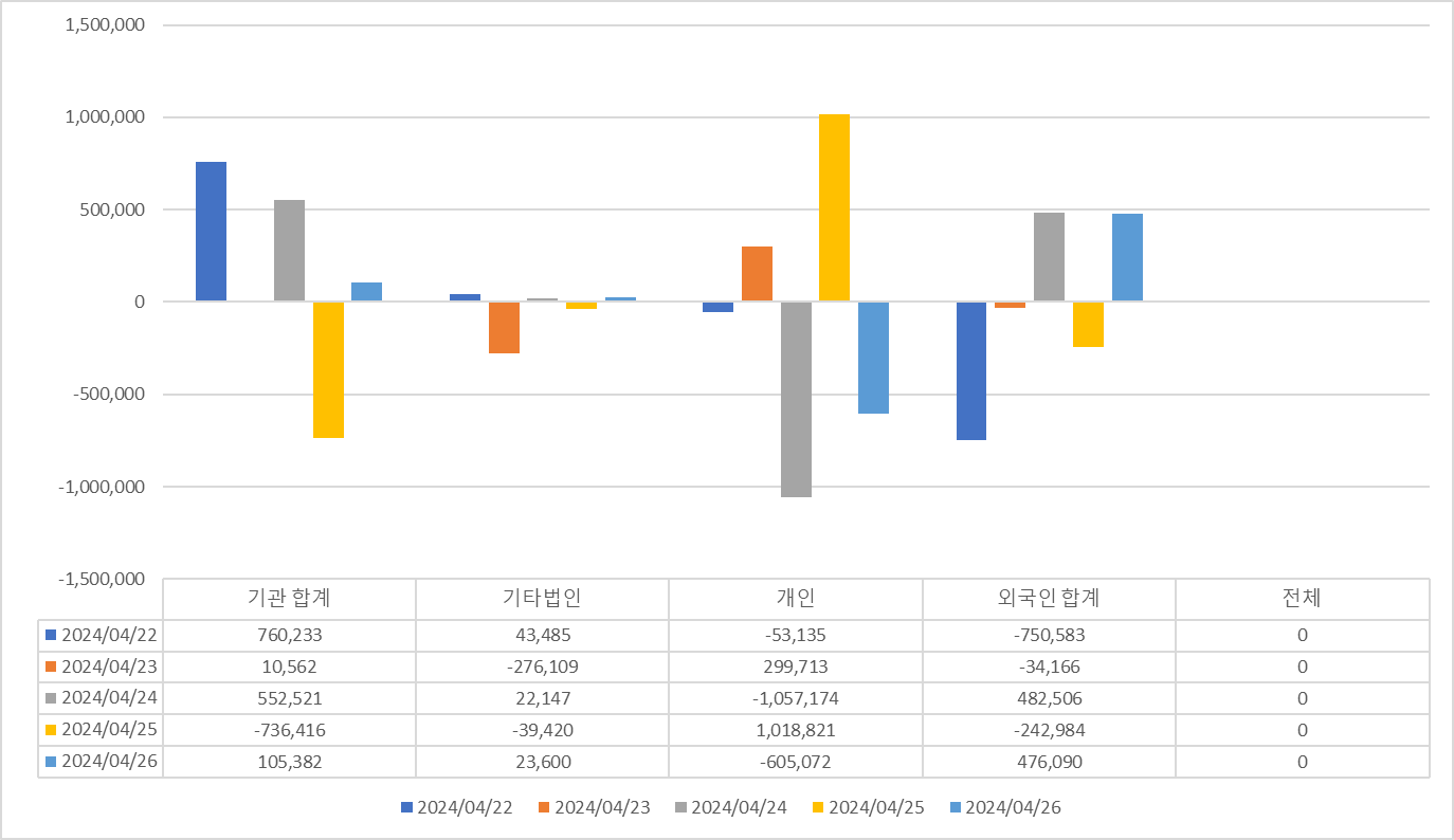다음은 외국인의 국내주식 순매수에 대한 일별 추이입니다.